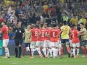 El chileno, siempre rudo dentro del campo, chocó con el colombiano, pero este le respondió.